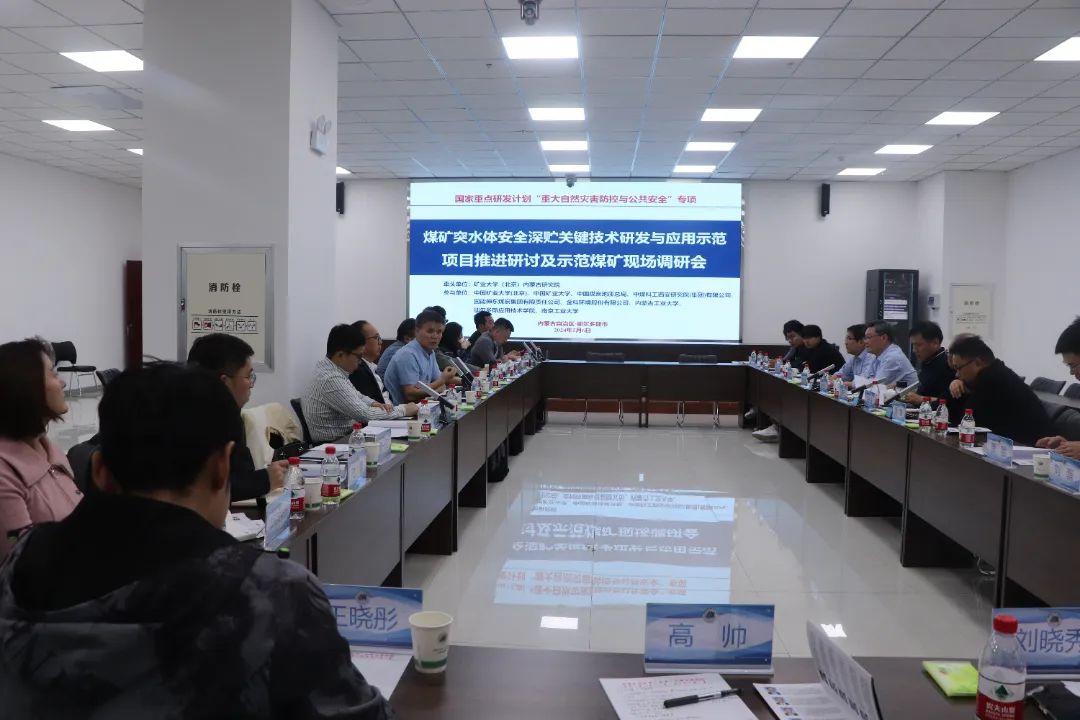 为加强项目课题组之间的协作沟通、确保项目年度任务的稳步推进和技术装备的示范落地,5月6日,由中国矿业大学(北京)内蒙古研究院牵头承担的“十四五”国家重点研发计划项目“煤矿突水体安全深贮关键技术研发与应用示范”项目推进研讨会在研究院举办。项目负责人董东林主持会议,研究院执行院长王国勇,项目各课题负责人及研究骨干等30余人参加,并邀请中煤西北能源有限公司副总工程师王朝引、鄂尔多斯市伊化矿业资源有限公司总工程师项敏、中煤地生态环境科技有限公司施立虎等6位业内专家莅临指导。