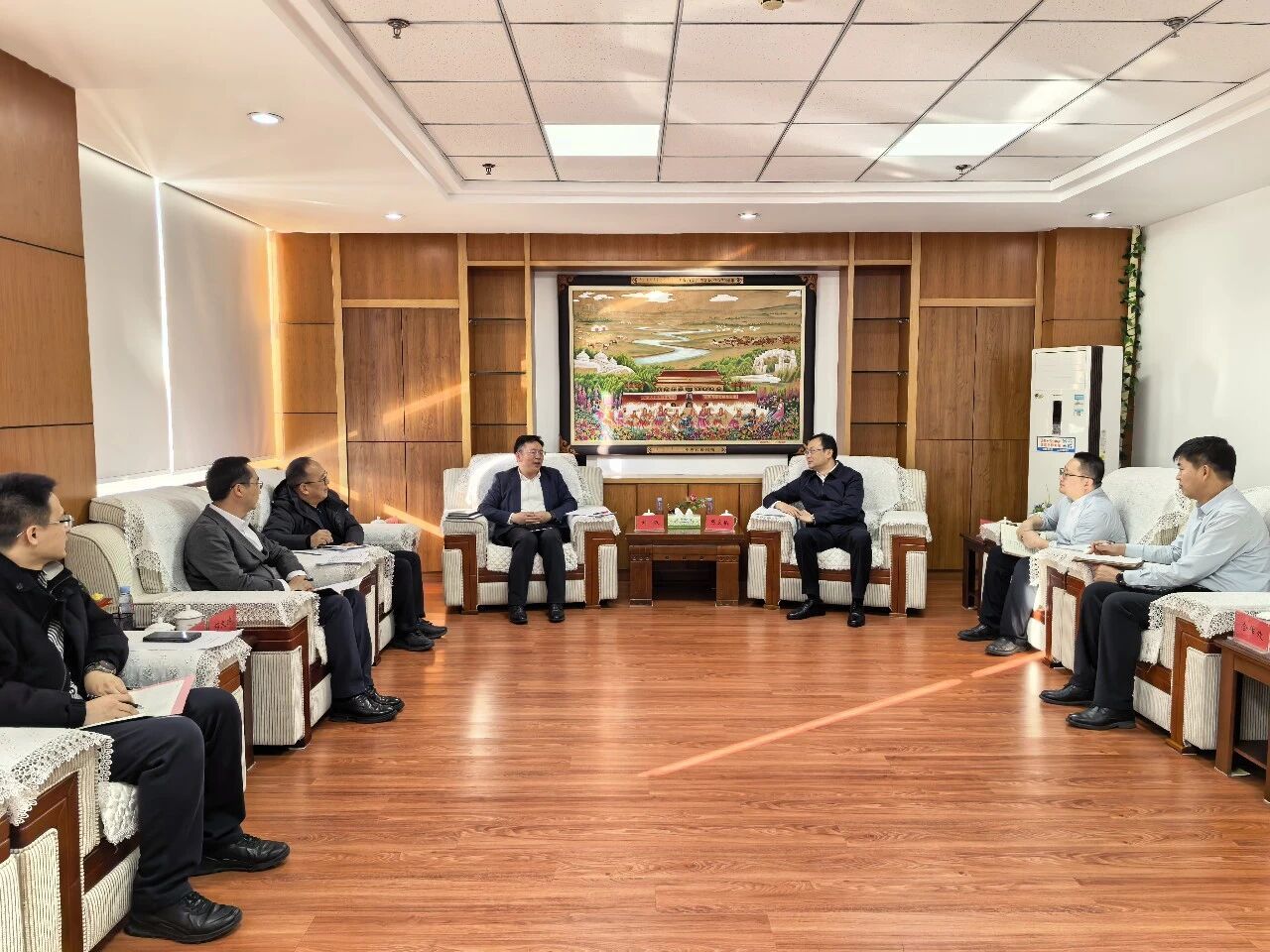 期间,刘波一行与鄂尔多斯市委副书记、市长于海宇,副市长张秀玲,市政府秘书长贾玉宝等进行了会谈。